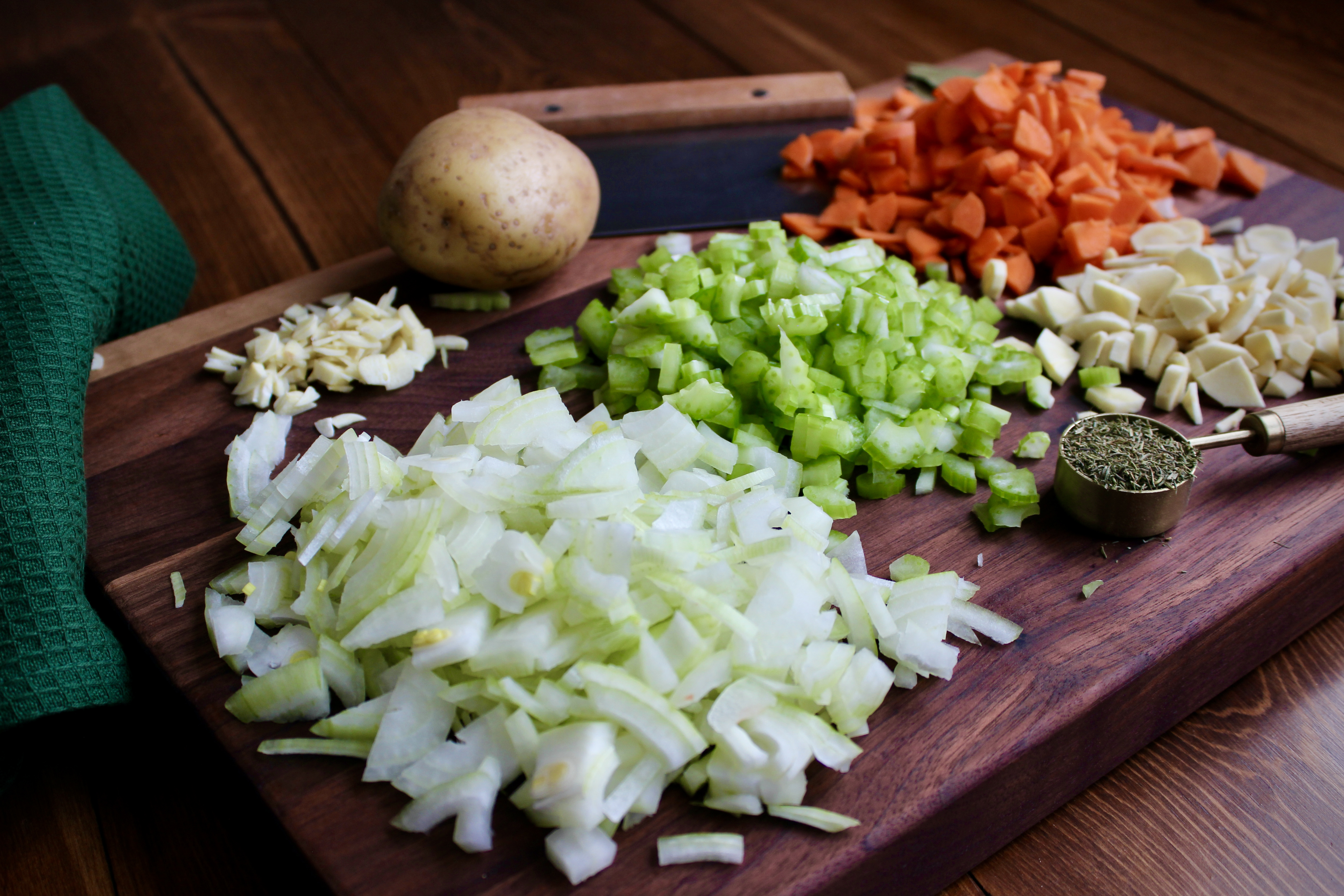 - 1 panais de taille moyenne, pelé et coupé en dés fins